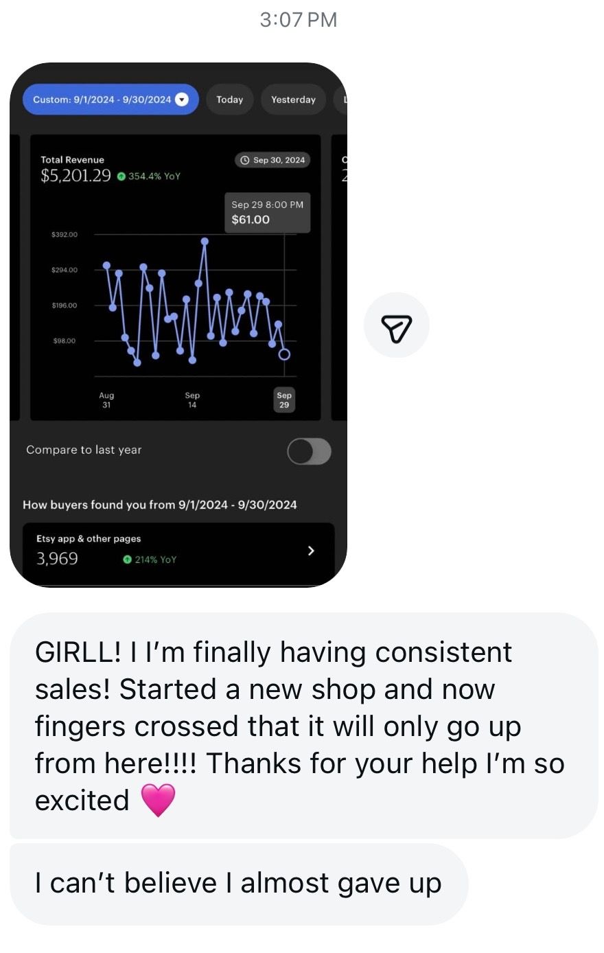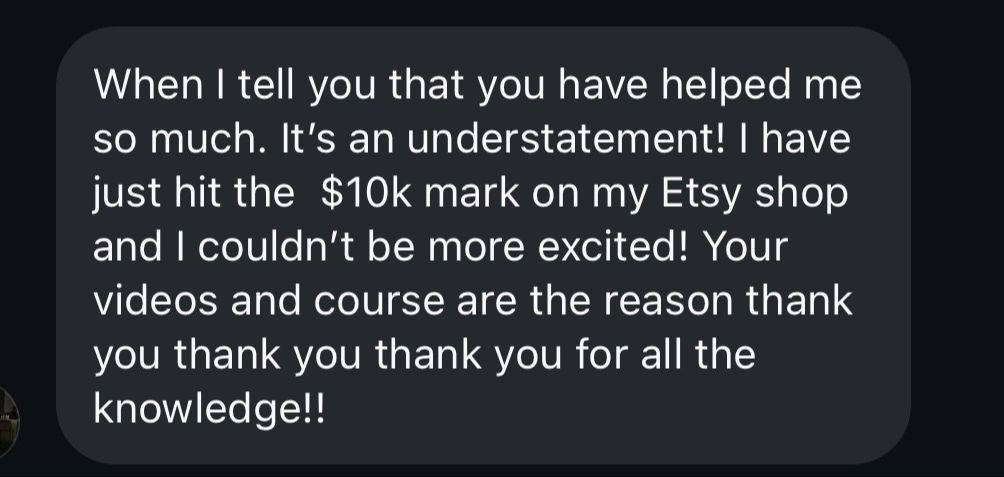 My journey started in 2020 after losing my bartending job. Within my first six months, I built a successful Etsy shop that completely changed my life. Since then, I’ve been lucky to grow an incredible community where I share my methods and help others create thriving Print On Demand businesses and Etsy shops.